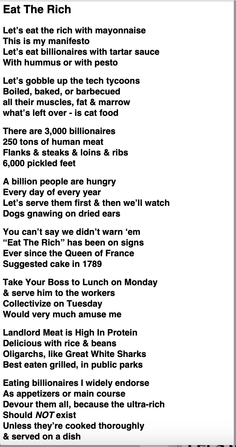 It’s true that 65% of Americans want higher taxes on the ultra-rich but what you get is a tax break for yachts and a lecture on “job Creation” But of course you have democracy. Of course you do.
