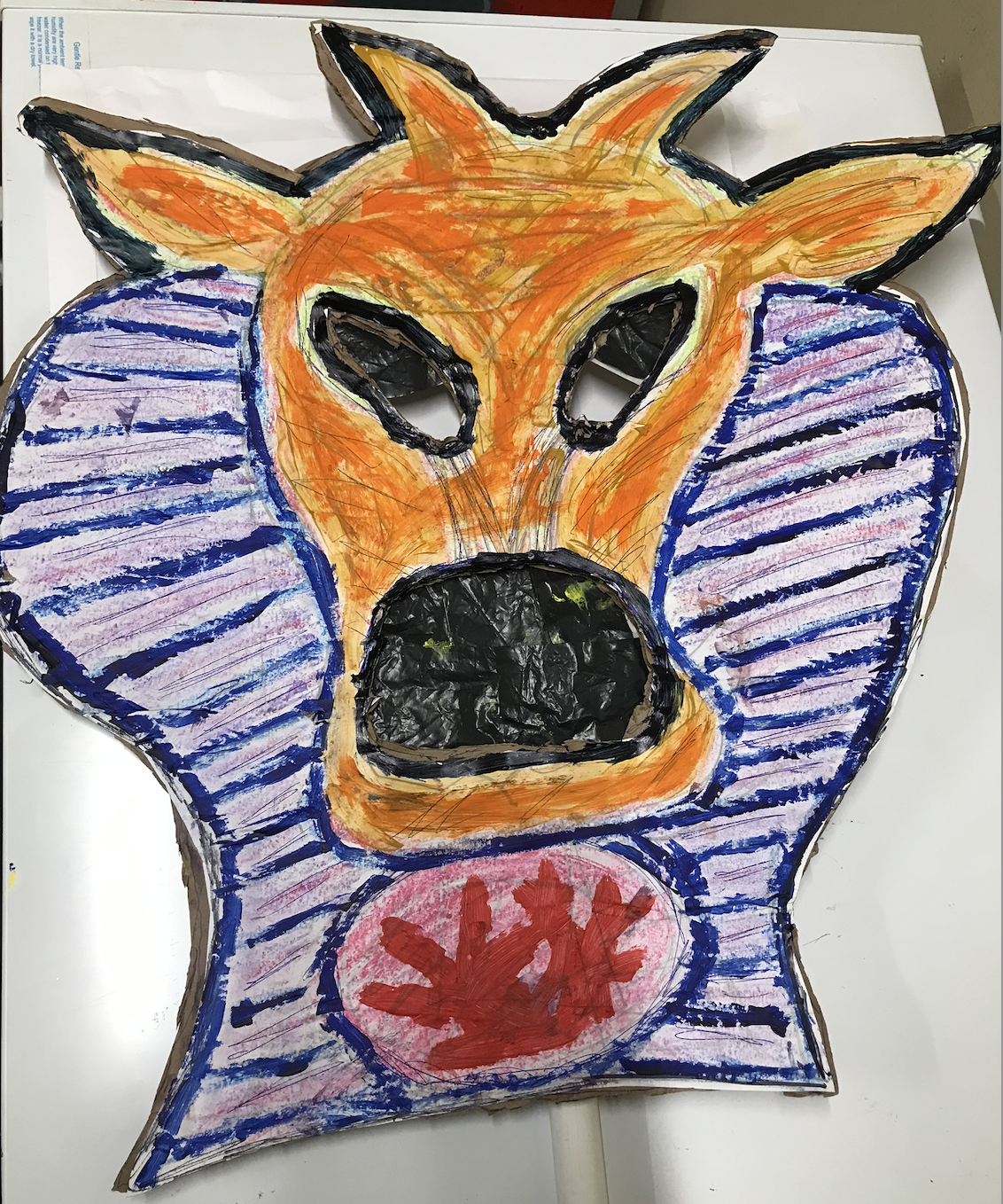 Allen Ginsberg’s poem “Howl” has a middle section called “Moloch’ that is a criticism of the American capitalist society. Moloch is the name of the Canaanite god - he was a huge statue with holes in him that led to fire pits. Children were sacrificed to Moloch. I have rewritten the poem - instead of talking about Moloch in the third person. I am going to BE MOLOCH, wearing this mask.
