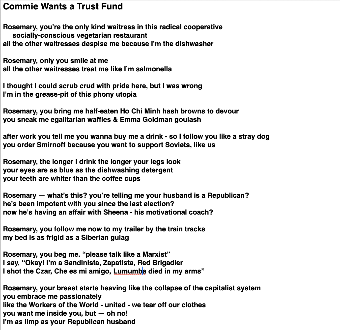 My love is endless oil and stone! My soul is electricity and banks! I created the specter of poverty.